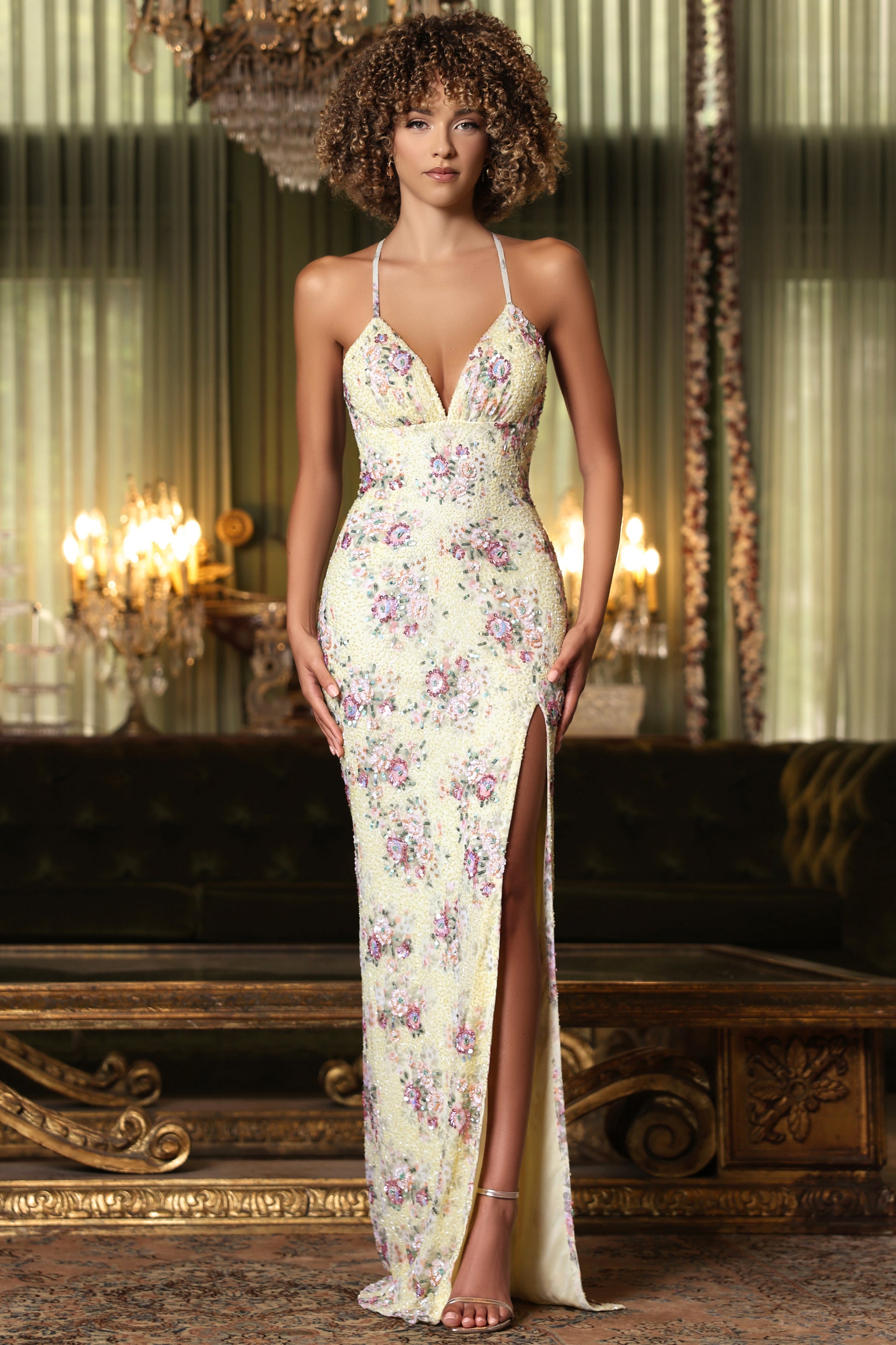 LONG, FRT SLIT BK ROUCHED BELTED X BACK